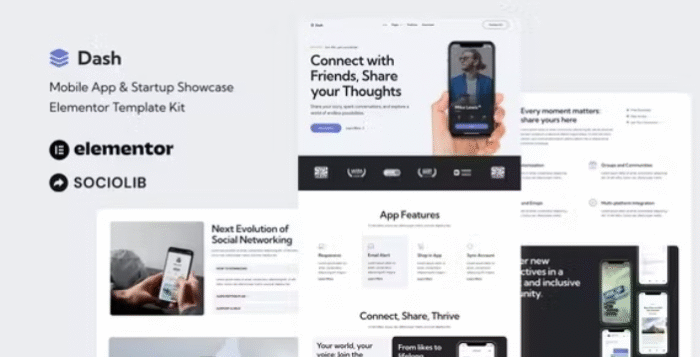 Dash - Mobile App & Startup Showcase Plantilla Elementor