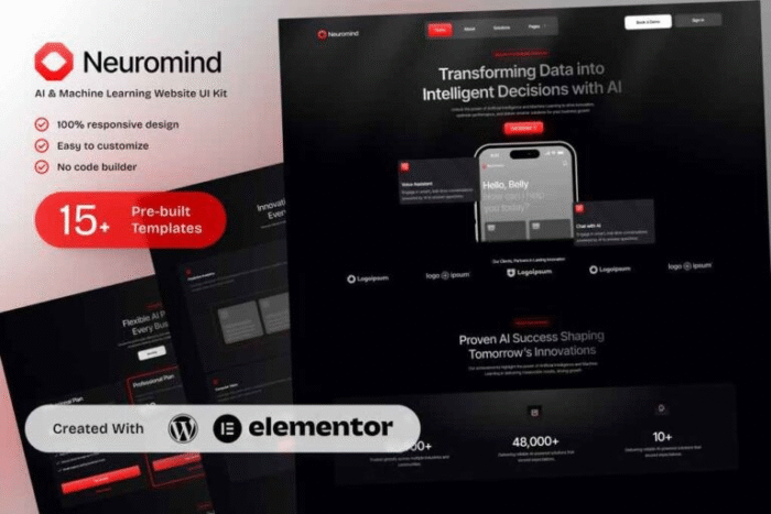 NeuroMind - AI & Machine Learning Elementor Template Kit: Potencie su visión tecnológica
