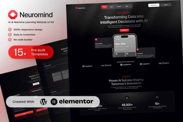 En NeuroMind Kit de plantillas Elementor es la solución perfecta para crear sitios web profesionales e impresionantes adaptados a agencias de IA, startups de aprendizaje automático e innovadores tecnológicos. Este kit premium ofrece una colección de plantillas prediseñadas y totalmente adaptativas que se integran a la perfección con Elementor y te ayudan a crear sitios atractivos sin tener que empezar desde cero.