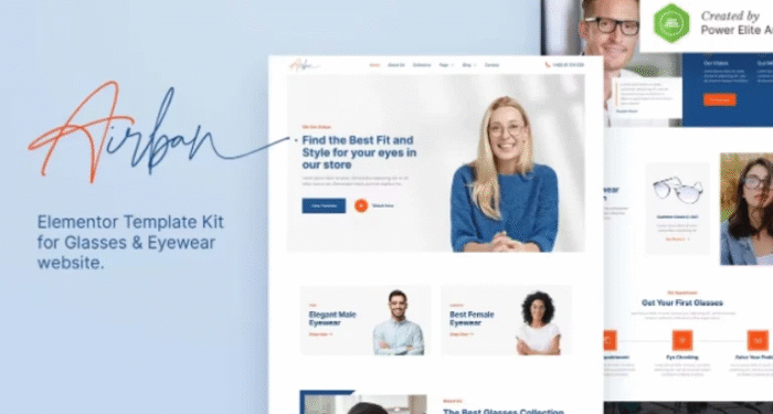 Airban is a clean and modern Elementor Template Kit designed for eyewear shops, optical stores, and fashion brands that sell glasses or sunglasses. With its sleek layout and product-focused structure, Airban helps you build a professional online store that highlights your frames, lenses, and accessories in a visually appealing way.