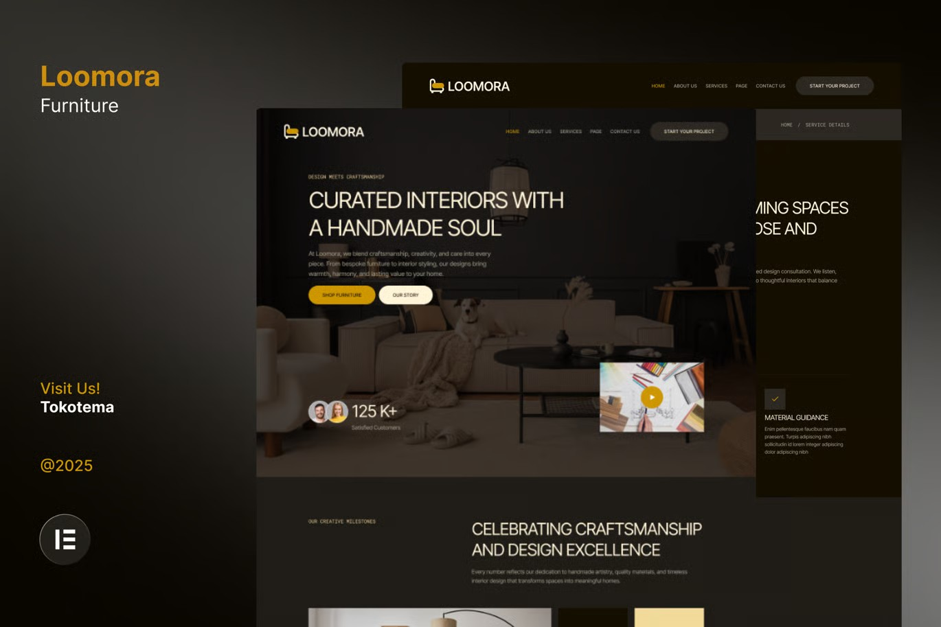 Loomora is a stylish Elementor template kit designed for handmade furniture studios, interior designers, and creative artisans who want a bold and elegant online presence. Its dark aesthetic highlights craftsmanship, natural materials, and premium interior concepts, allowing your work to stand out with confidence.
