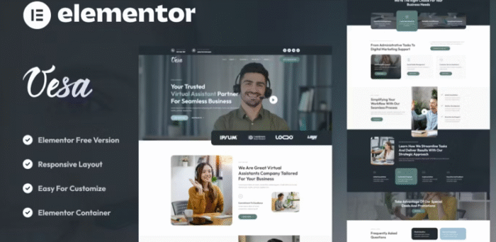 Vesa brings your virtual assistant business to life. This Elementor Template Kit lets you build a professional WordPress site quickly. Use it to showcase services, attract clients, and handle bookings with ease. Perfect for freelancers, agencies, or anyone offering remote support.